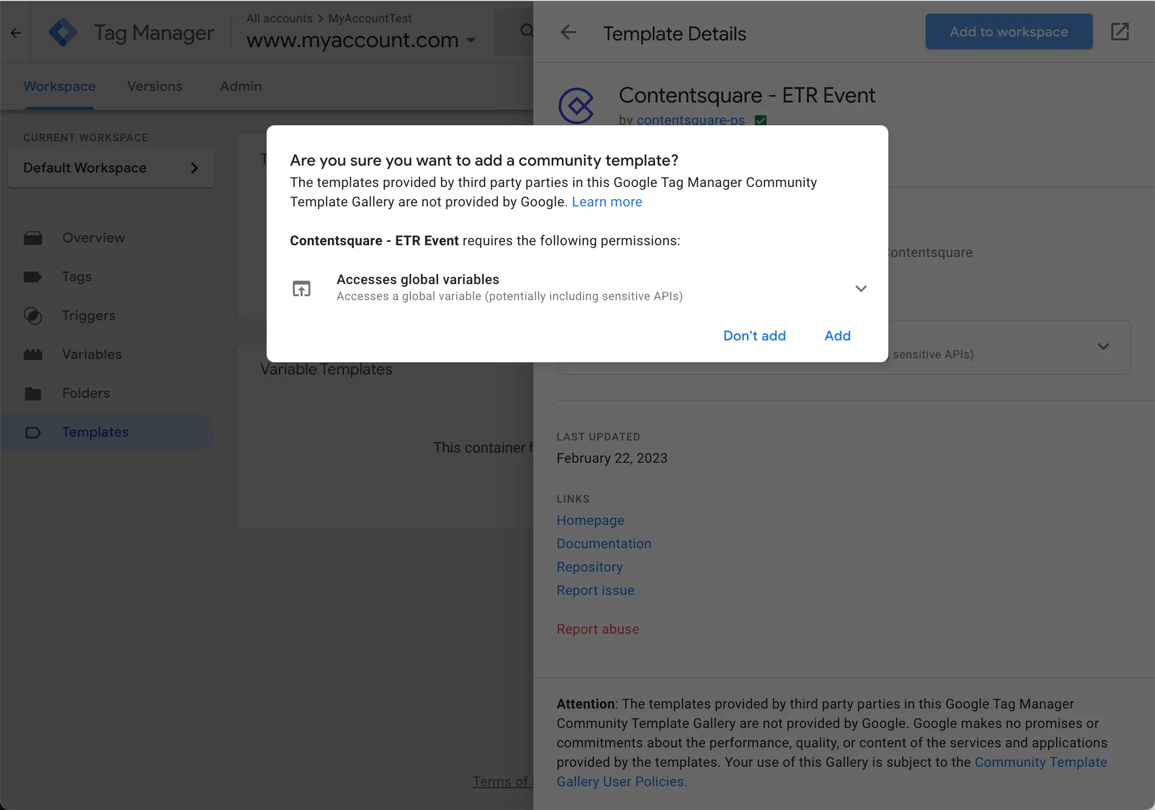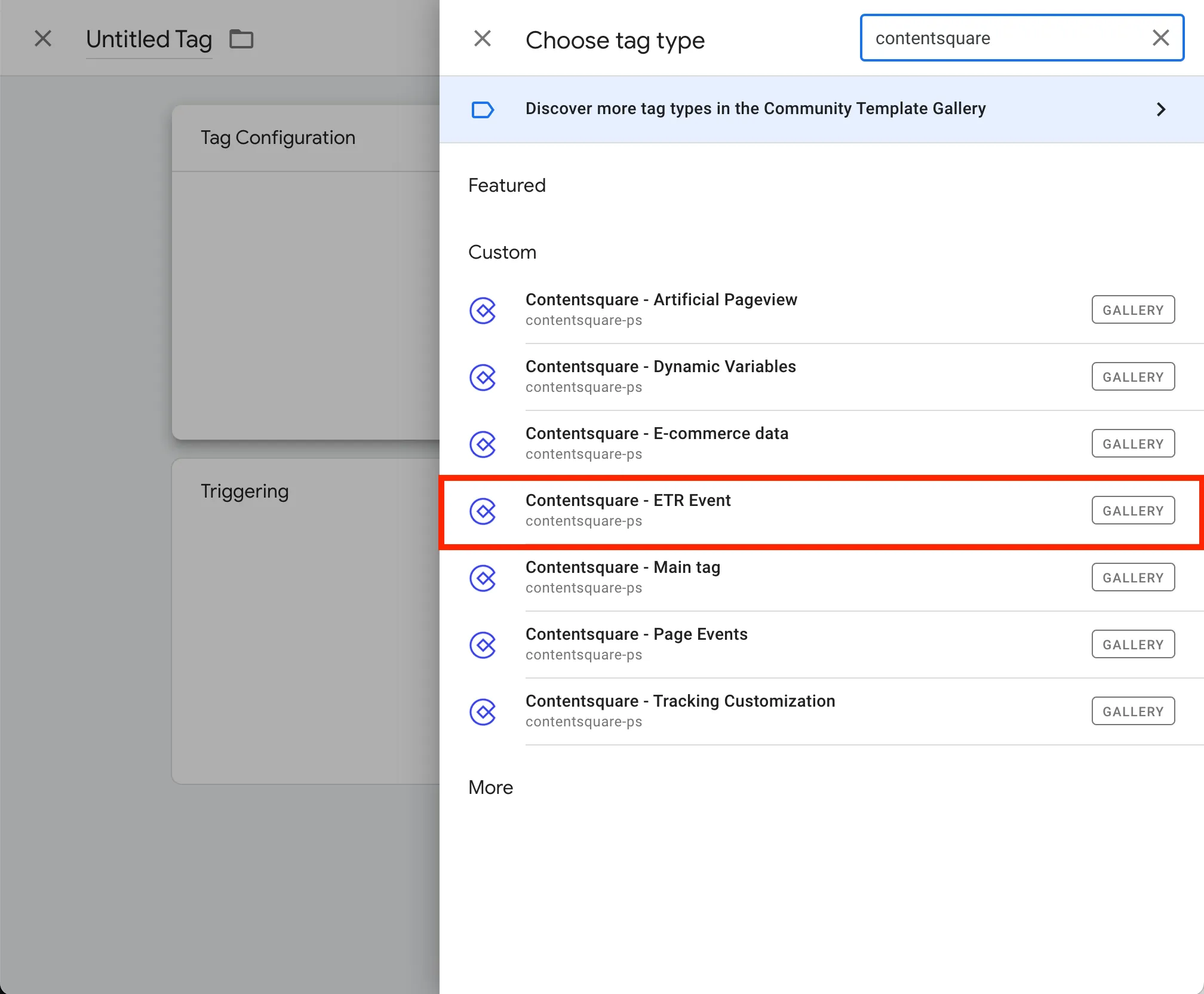 contentsquareand select the Contentsquare - ETR Event template that you've previously added to your container.