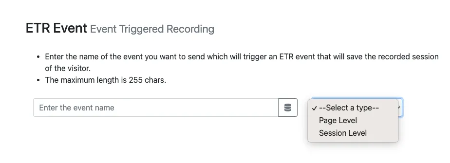 Section titled Custom HTMLTo trigger an ETR event for the Event Triggered Replay feature, use the trackEventTriggerRecording command: